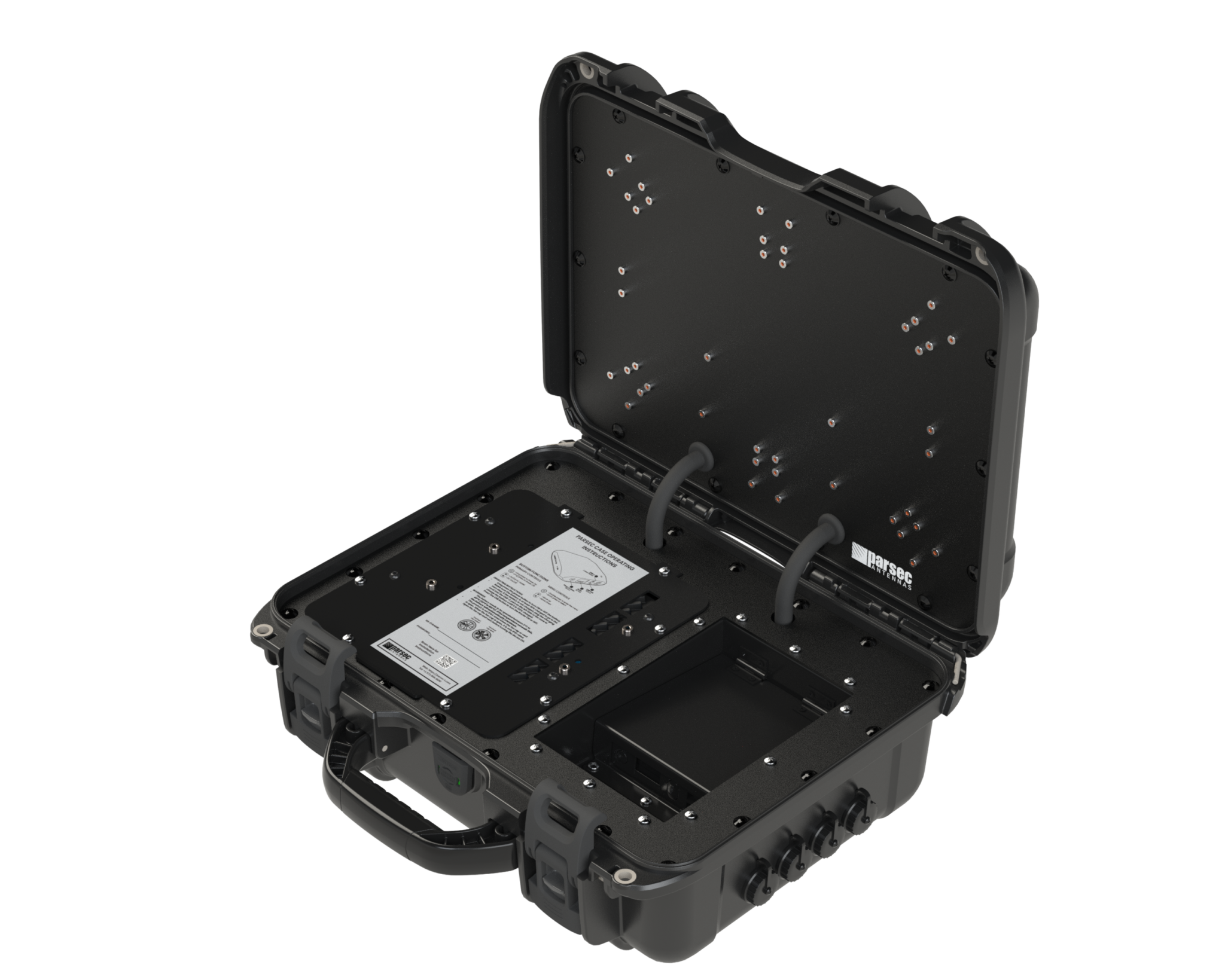 Parsec’s Bernese Mountain Dog Series is a low-profile 5G antenna with four element 4X4 MIMO cellular, an additional and separate two element MIMO cellular, two element MIMO Wi-Fi, and GPS fully contained in the lid of a customizable waterproof box.