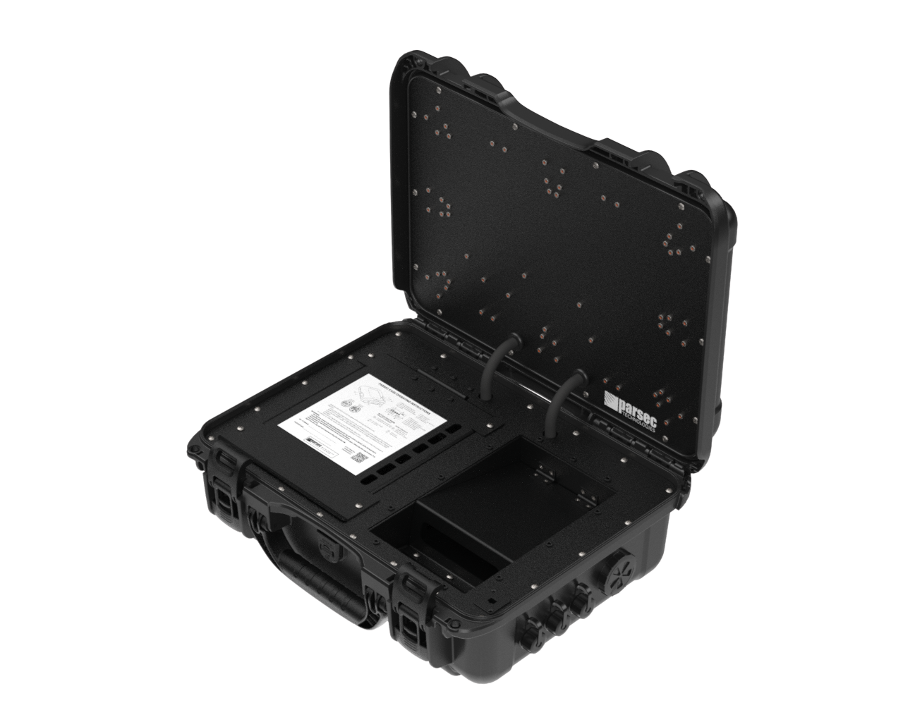 The Bloodhound Emergency Hot Spot is a large IP67 case with built-in antennas that are optimized for the extra thick (3.5mm) plastic used in industry strength cases. Both sets of CELL and WIFI antennas were designed for maximum performance even in remote areas where the cellular infrastructure may have been compromised. Parsec has taken the unique approach to design all antennas to fit safely into the lid of the case, reducing damage and loss of performance due to hard use.